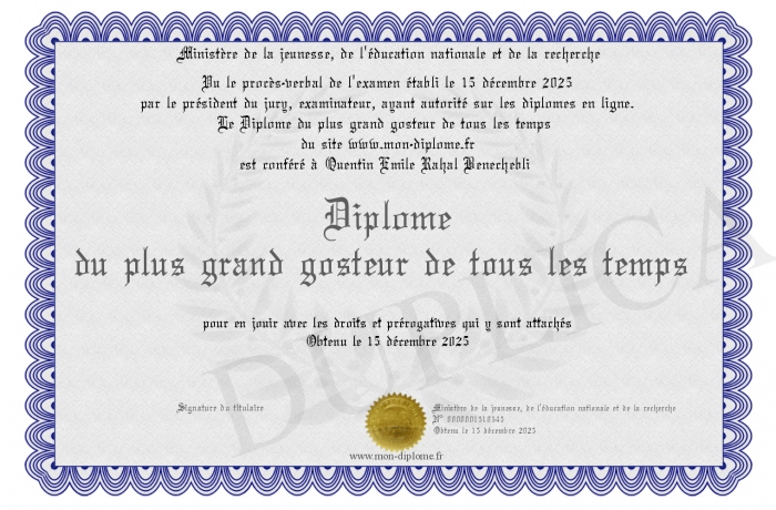 Envoyez par email votre Diplôme du plus grand gosteur de tous les temps personalisé