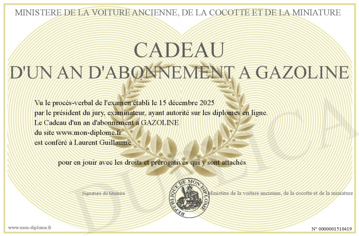 Envoyez par email votre Cadeau d'un an d'abonnement a GAZOLINE personalisé