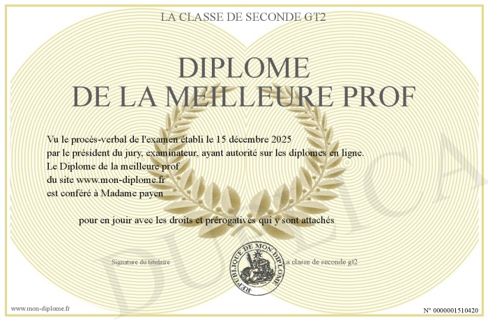 Envoyez par email votre Diplôme de la meilleure prof personalisé