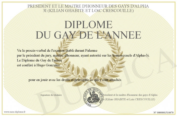 Envoyez par email votre Diplôme du Gay de l'année personalisé