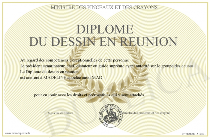 Envoyez par email votre Diplôme du dessin en reunion personalisé