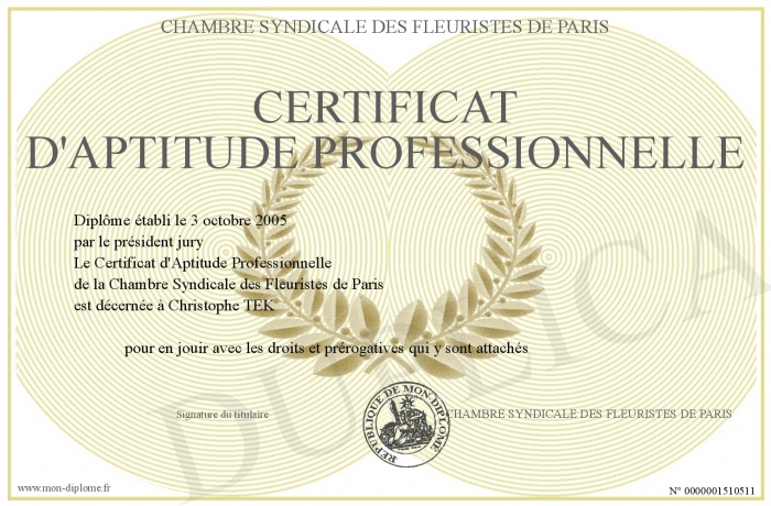 Envoyez par email votre Certificat d'Aptitude Professionnelle personalisé
