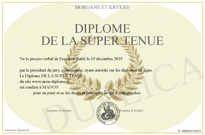 Envoyez par email votre Diplôme DE LA SUPER TENUE personalisé