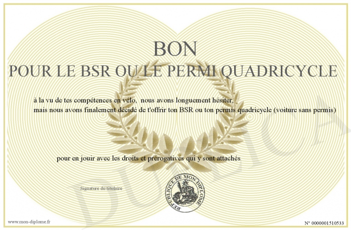 Envoyez par email votre bon pour le BSR ou le permi quadricycle personalisé