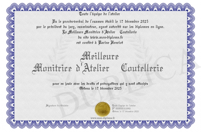 Envoyez par email votre Meilleure Monitrice d'Atelier Coutellerie personalisé