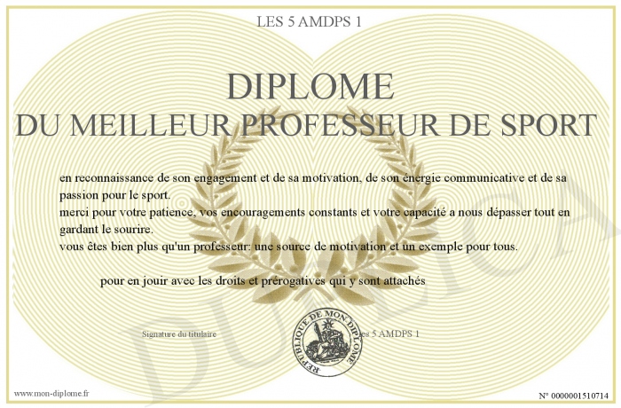Envoyez par email votre Diplôme du meilleur professeur de sport personalisé