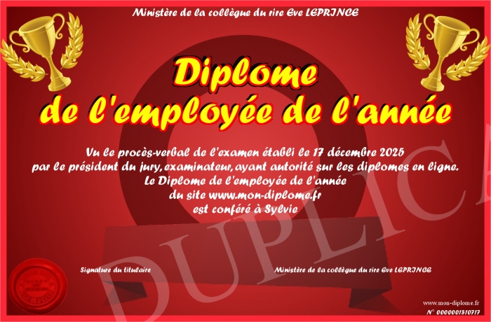Envoyez par email votre Diplôme de l'employée de l'année personalisé