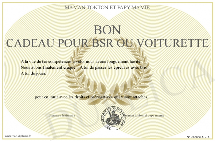 Envoyez par email votre BON CADEAU POUR BSR OU VOITURETTE personalisé