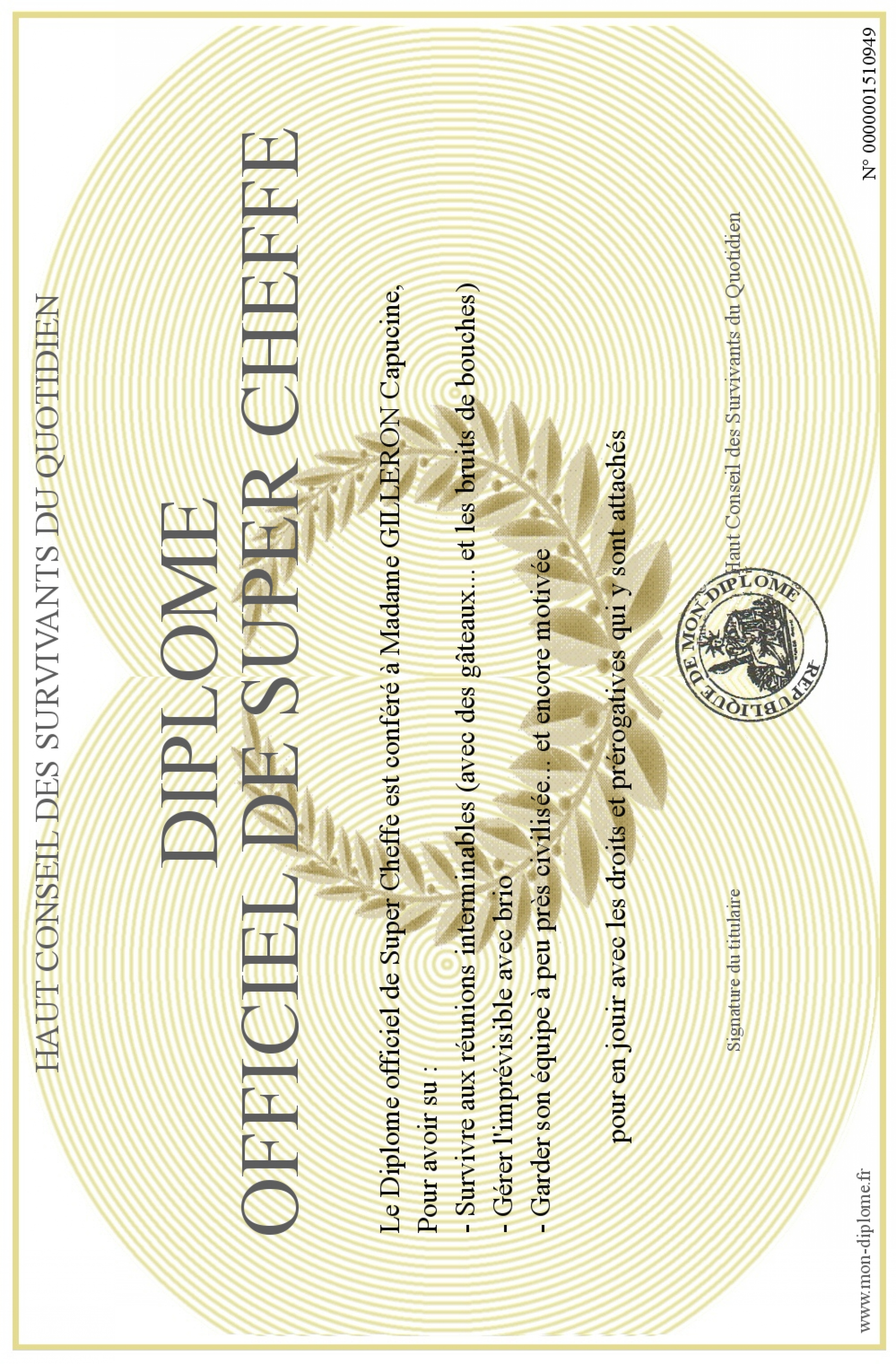 Envoyez par email votre Diplôme officiel de Super Cheffe personalisé