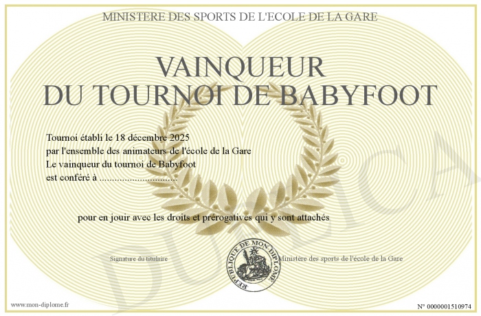 Envoyez par email votre vainqueur du tournoi de Babyfoot personalisé
