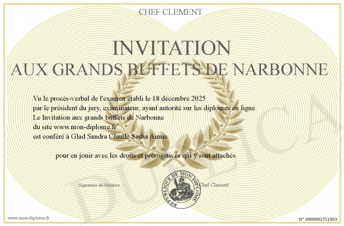 Envoyez par email votre Invitation aux grands buffets de Narbonne personalisé