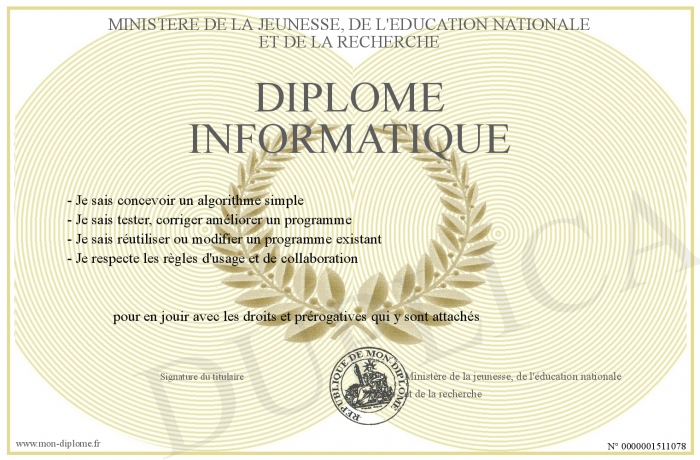 Envoyez par email votre Diplome Informatique personalisé
