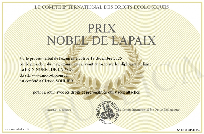 Envoyez par email votre PRIX NOBEL DE LAPAIX personalisé