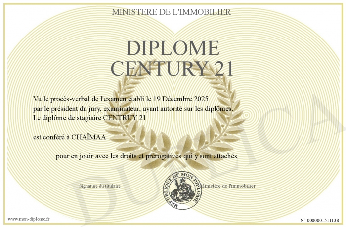 Envoyez par email votre Diplôme Century 21 personalisé