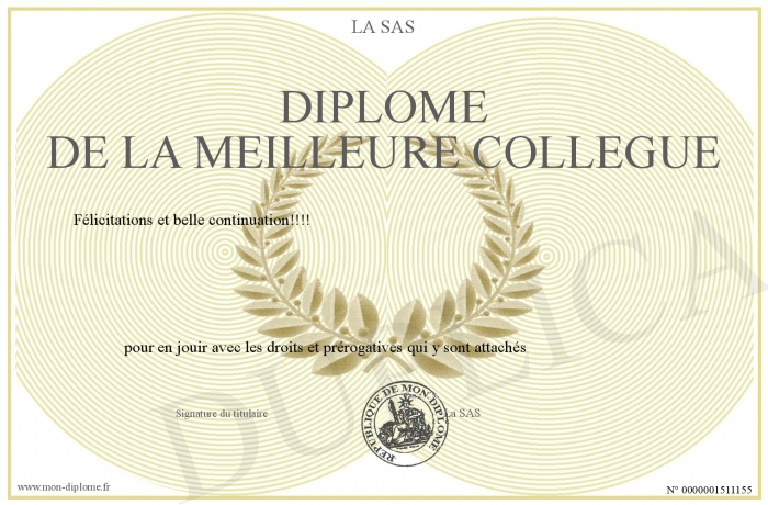 Envoyez par email votre Diplôme de la meilleure collégue personalisé