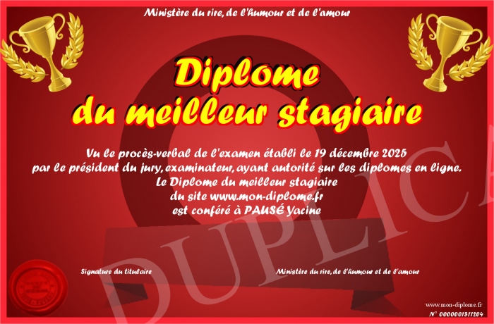 Envoyez par email votre Diplome du meilleur stagiaire personalisé