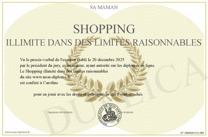 Envoyez par email votre Shopping illimité dans des limites raisonnables personalisé