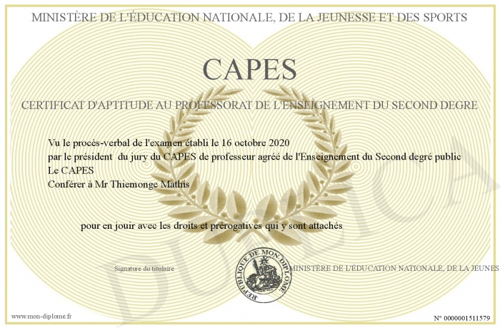 Envoyez par email votre CAPES Certificat d'aptitude au professorat de l'enseignement du second degré personalisé