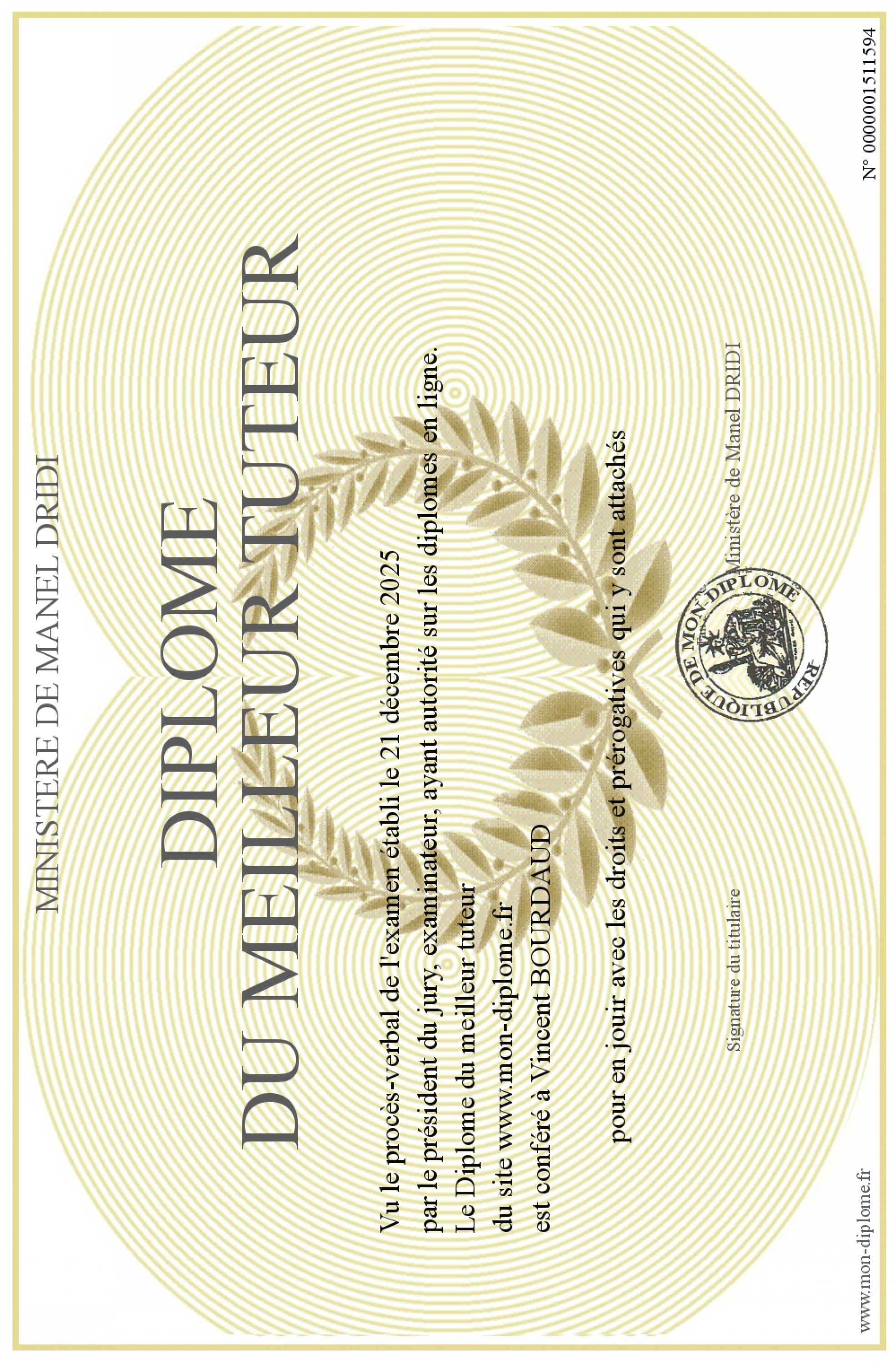 Envoyez par email votre Diplôme du meilleur tuteur personalisé