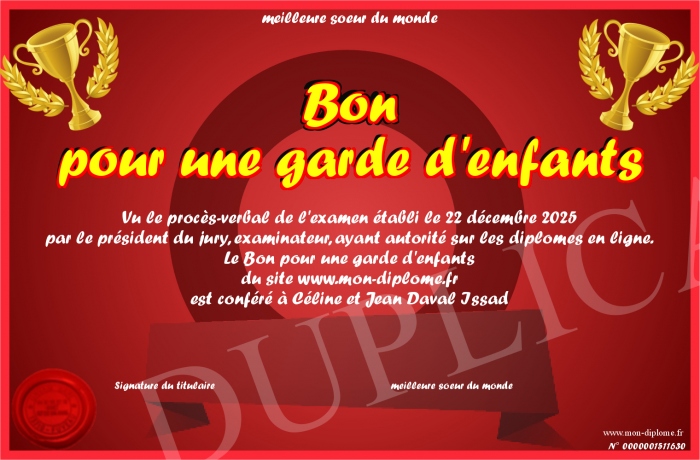 Envoyez par email votre Bon pour une garde d'enfants personalisé