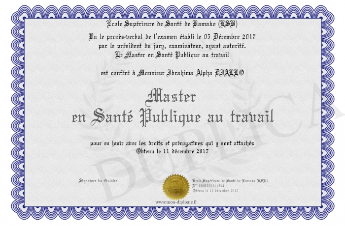 Envoyez par email votre Master en Santé Publique au travail personalisé