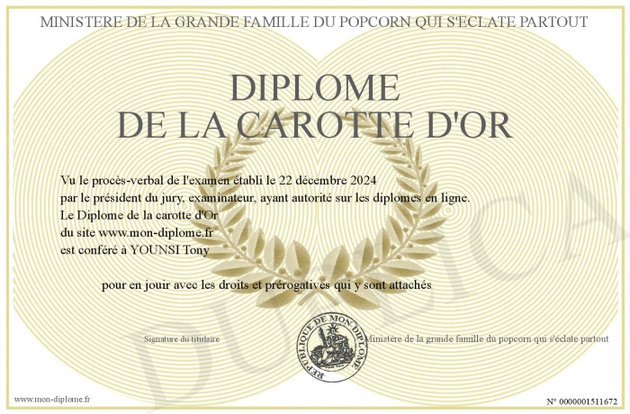 Envoyez par email votre Diplôme de la carotte d'Or personalisé