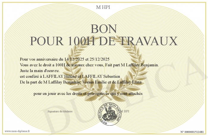 Envoyez par email votre Bon pour 100H de travaux personalisé