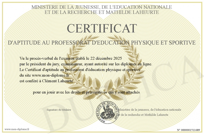 Envoyez par email votre Certificat d'aptitude au professorat d'éducation physique et sportive personalisé