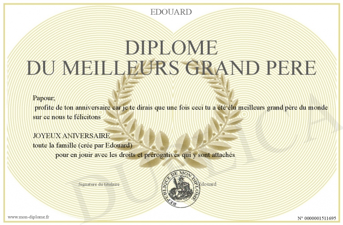 Envoyez par email votre diplome du meilleurs grand père personalisé