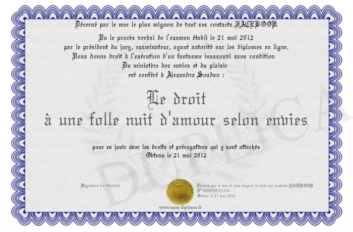 envoyé par le Décerné par le mec le plus mignon de tout ses contacts FACEBOOK !