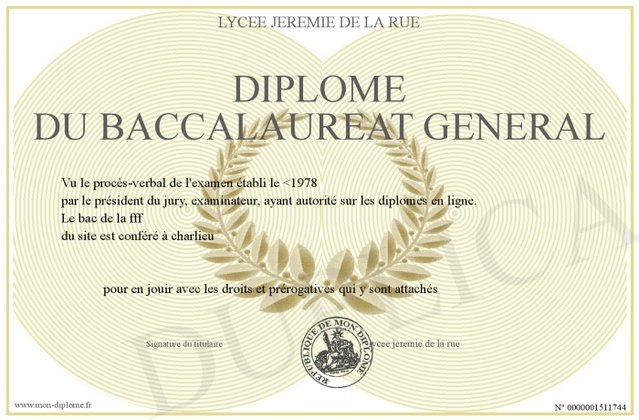 Envoyez par email votre Diplôme du baccalaureat général personalisé