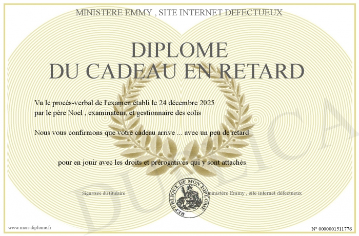 Envoyez par email votre Diplôme du cadeau en retard personalisé