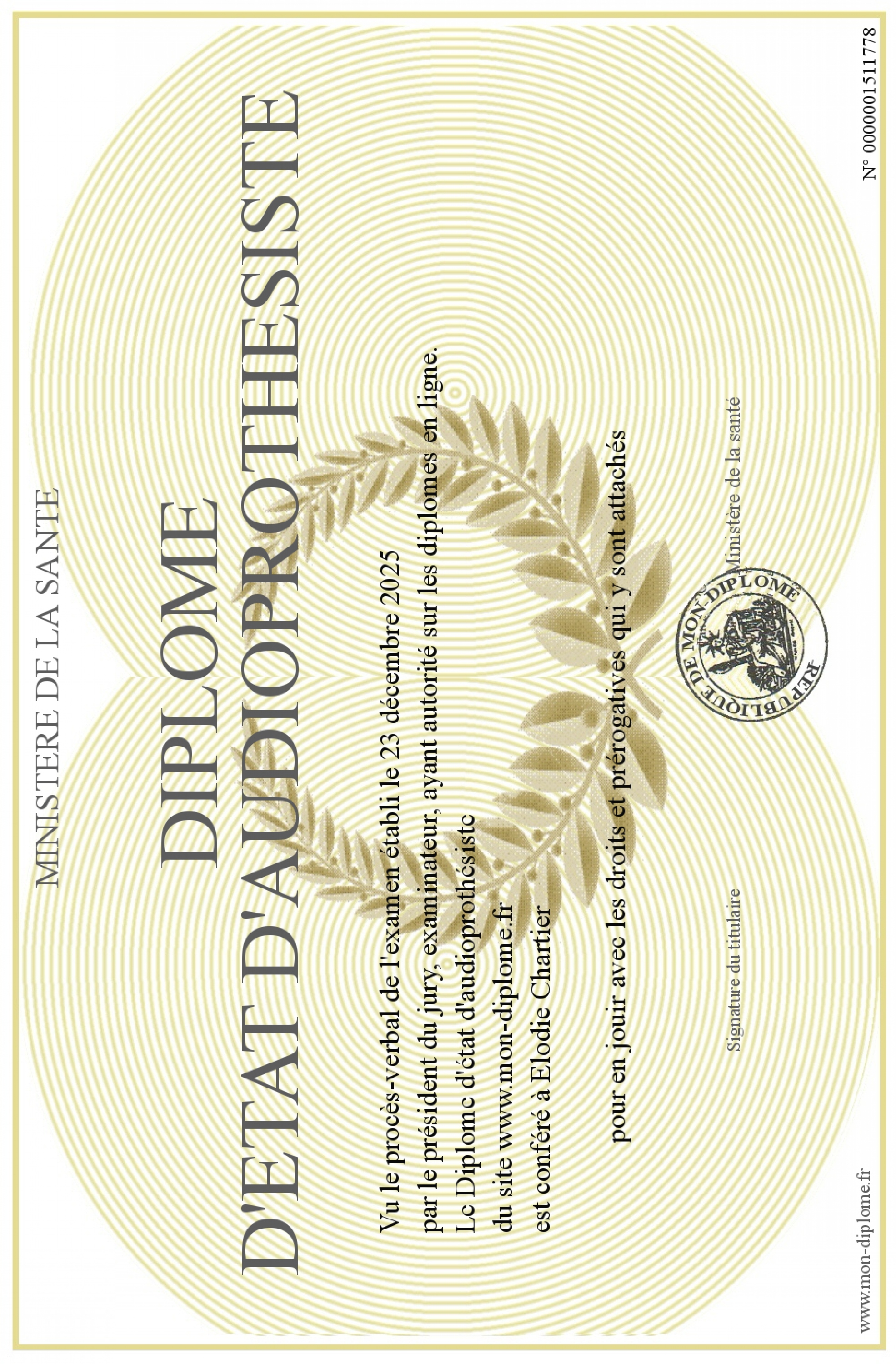 Envoyez par email votre Diplôme d'état d'audioprothésiste personalisé