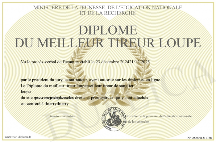 Envoyez par email votre Diplôme du meilleur tireur loupe personalisé