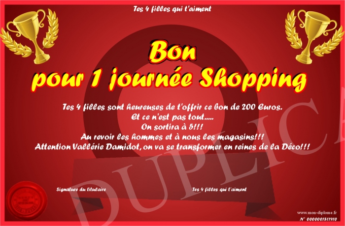 Envoyez par email votre Bon pour 1 journée Shopping personalisé