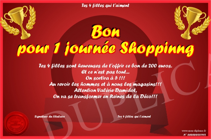 Envoyez par email votre Bon pour 1 journée Shoppinng personalisé