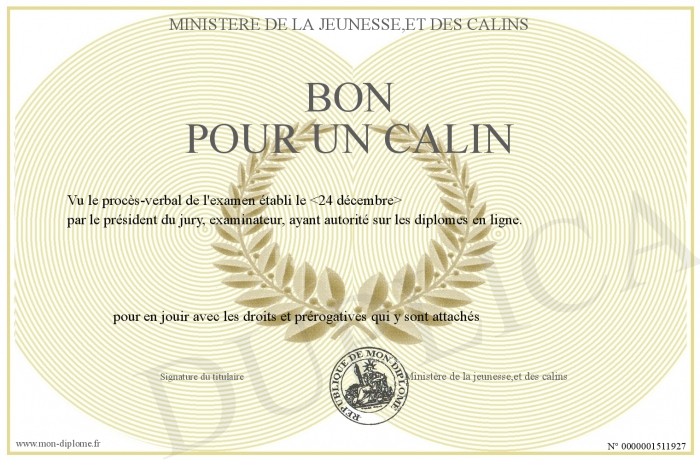 Envoyez par email votre BON POUR UN CALIN personalisé