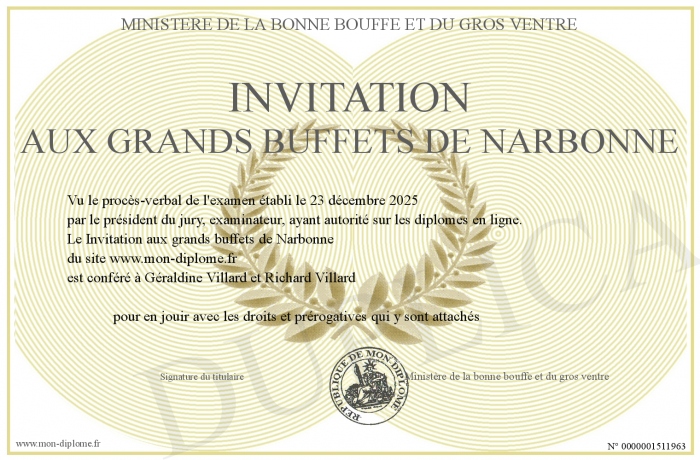 Envoyez par email votre Invitation aux grands buffets de Narbonne personalisé