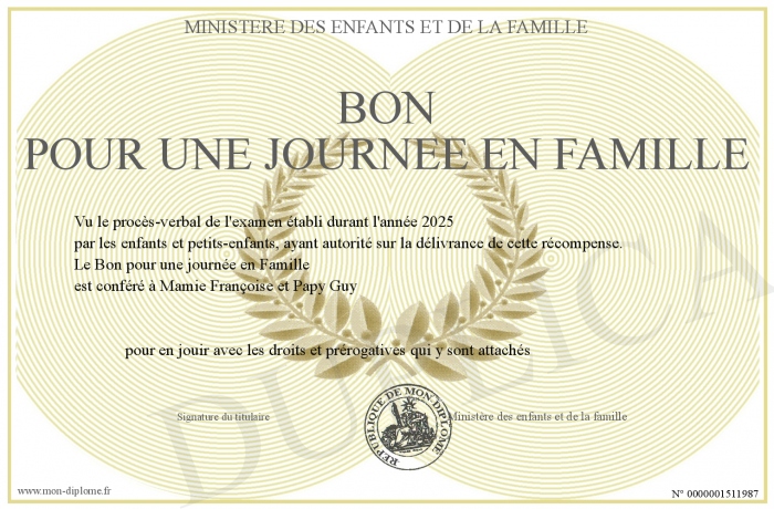 Envoyez par email votre Bon pour une journée en famille personalisé