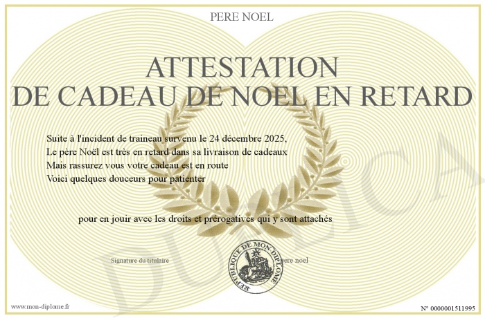 Envoyez par email votre Attestation de cadeau de noel en retard personalisé