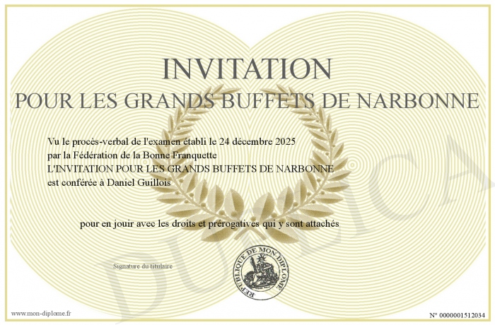 Envoyez par email votre INVITATION POUR LES GRANDS BUFFETS DE NARBONNE personalisé