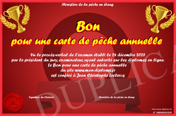 Envoyez par email votre Bon pour une carte de pêche annuelle personalisé