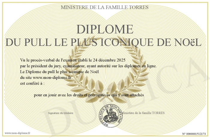 Envoyez par email votre Diplôme du pull le plus iconique de Noël personalisé