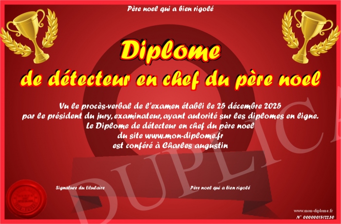 Envoyez par email votre Diplôme de détecteur en chef du père noel personalisé