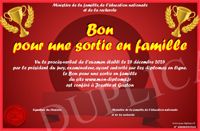 Envoyez par email votre Bon pour une sortie en famille personalisé
