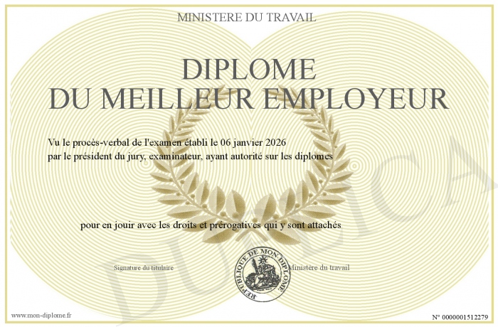 Envoyez par email votre Diplôme du MEILLEUR EMPLOYEUR personalisé