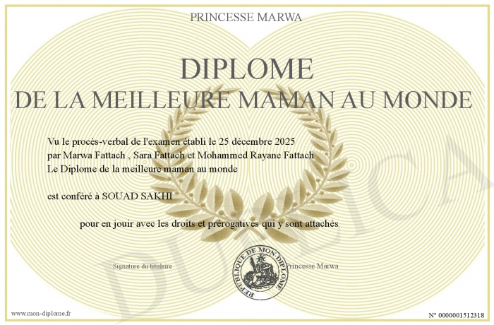 Envoyez par email votre Diplôme de la meilleure maman au monde personalisé