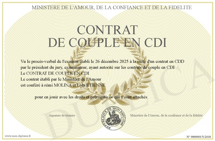 Envoyez par email votre CONTRAT DE COUPLE EN CDI personalisé
