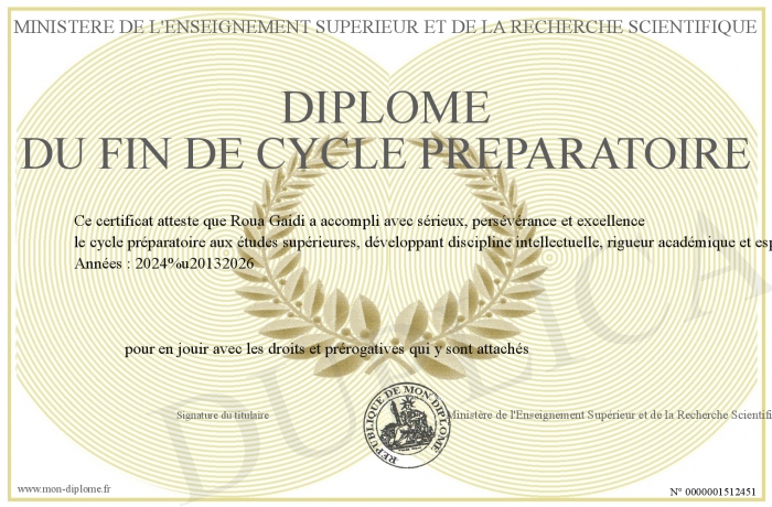 Envoyez par email votre Diplôme du fin de cycle préparatoire personalisé