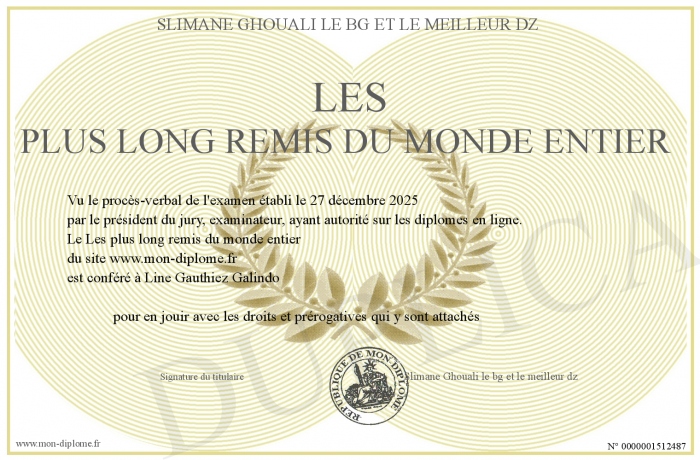Envoyez par email votre Les plus long remis du monde entier personalisé